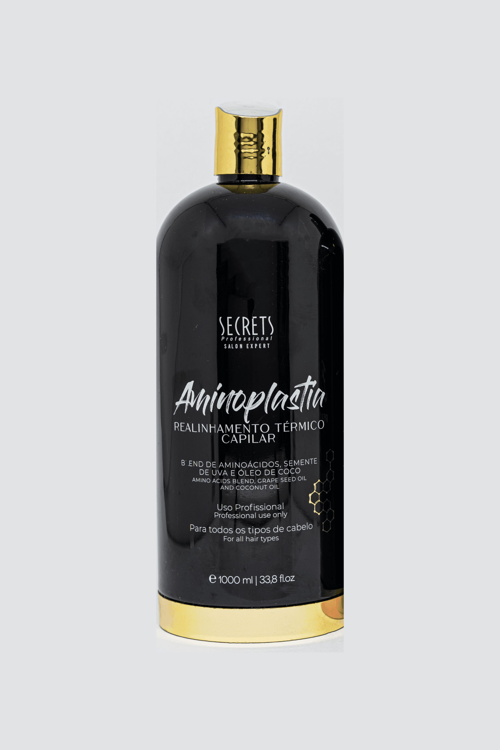 Ativos: Blend de Aminoácidos e Óleo de semente de uva, de açaí e óleo de coco.